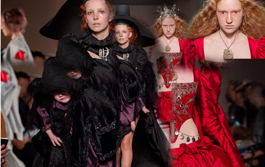 Что делает ее показы такими особенными? Атмосфера тотального театра: модели плачут кровавыми слезами, падают в обморок, читают манифесты. Это не демонстрация одежды — это искусство в чистом виде.