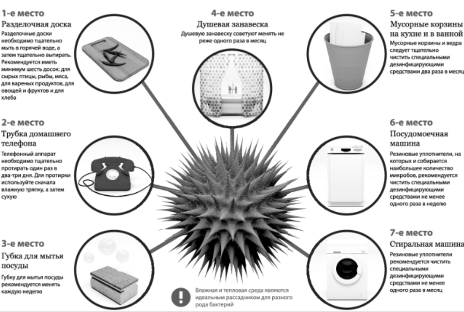 Знаете ли вы, что внутренняя поверхность раковины может быть загрязнена в 180 тысяч раз сильнее, чем сиденье унитаза? Остатки пищи и постоянная влажность создают райские условия для кишечной палочки, сальмонеллы и золотистого стафилококка.
